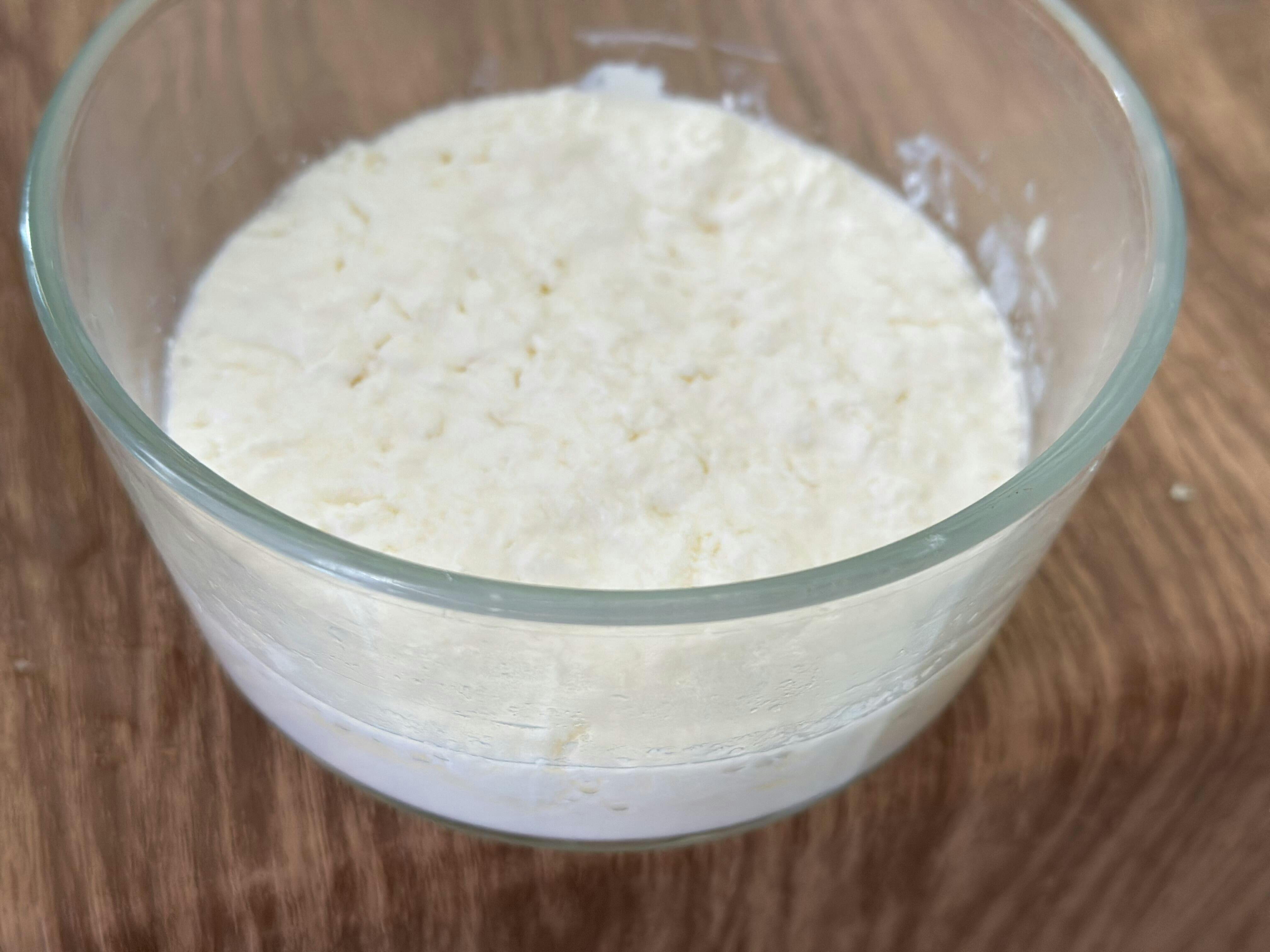 Leave it fermenting longer — up to 48 hours — especially in cooler weather. Once strained, refrigerate overnight; it will thicken further as it chills. The tang develops naturally with each batch as the grains fully “wake up.”